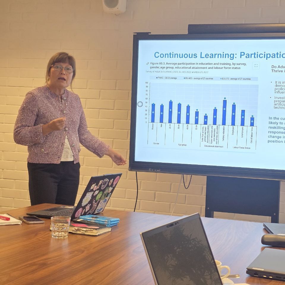 Експертам було продемонстровано, як аналітика трансформується в конкретні рішення й навчальні пропозиції для дорослого населення завдяки інструменту Skills Needs Compass. Логіка роботи «дані → політика → навчання» у фінській практиці забезпечує взаємодію без зайвих розривів і затримок.