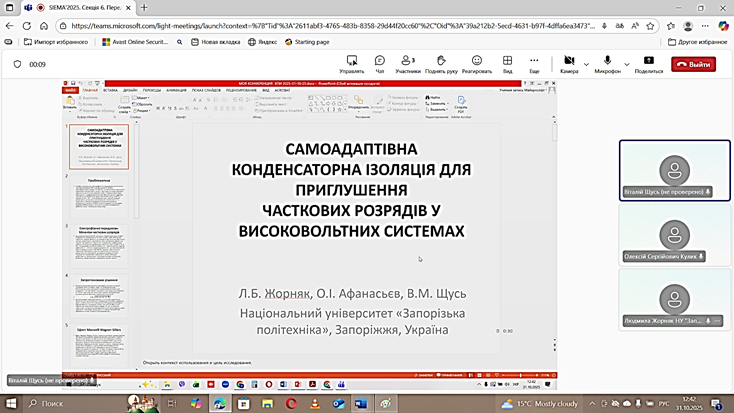 Викладачі Жорняк Л. Б., Афанасьєв О. І. та аспіранти Щусь В. М., Левченко О. П. і Бахметьєв В. В. виступили з доповідями «Самоадаптивна конденсаторна ізоляція для приглушення часткових розрядів у високовольтних системах» і «Спосіб аналітичного визначення параметрів режиму форсованих випробувань тиристорних модулів пристрою РПН», «Аналіз технічного стану розподільчих мереж напругою 10–35 кВ в енергосистемі України»