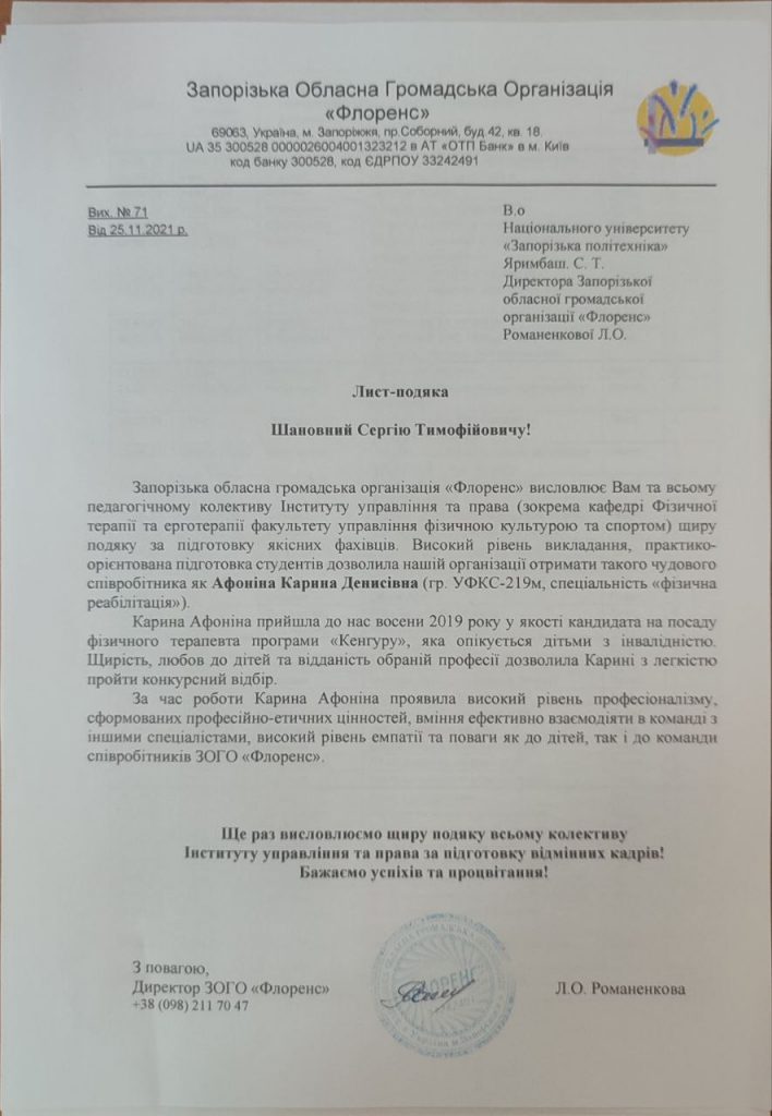 старший викладач Галстян А.В. є директором ТОВ «Клініка реабілітації суглобів та хребта Оrtosano» ,
