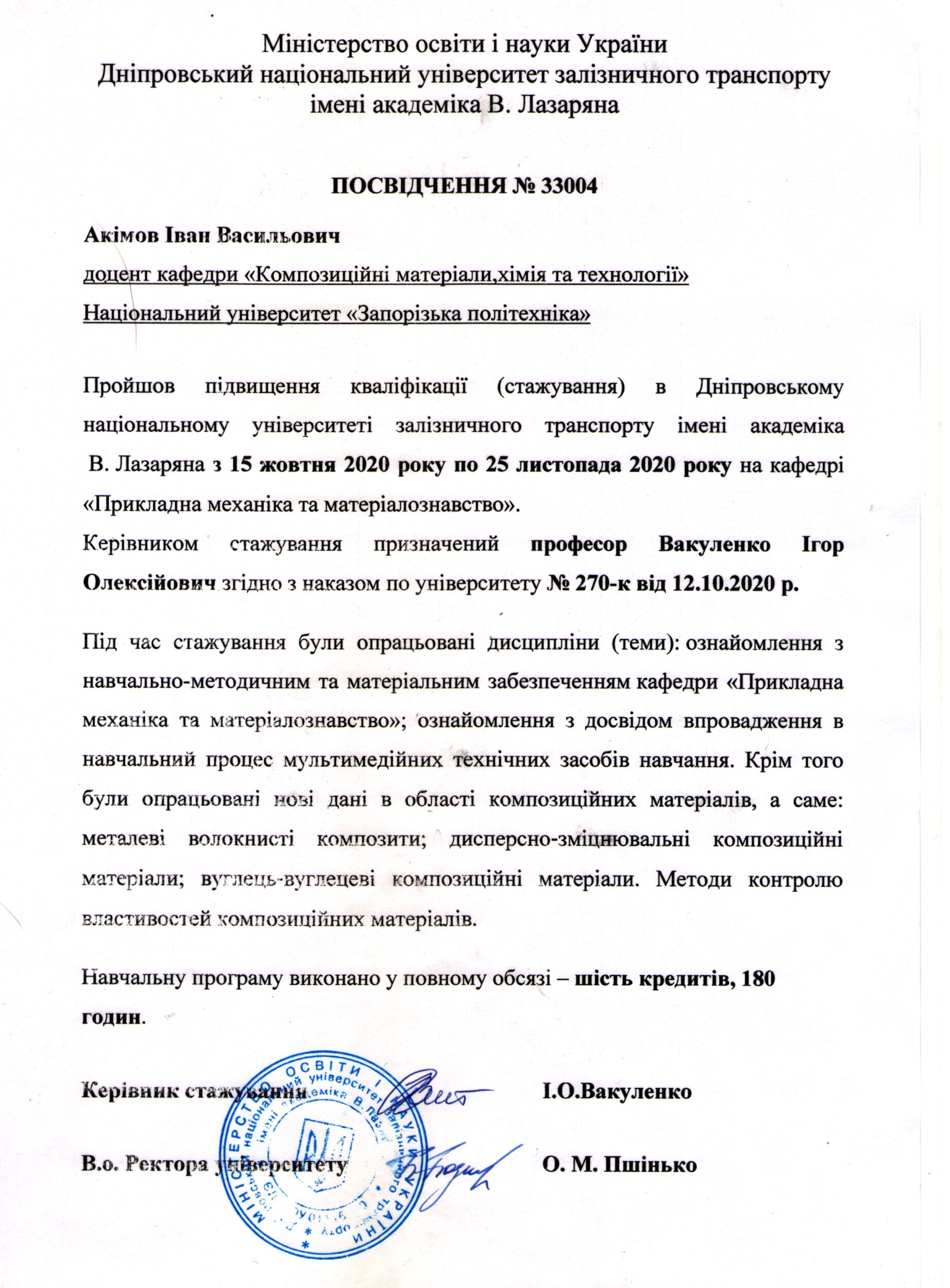 Акімов І.В. Підвищення високотемпературної витривалості графітизованих сталей [Текст] / Акімов І.В., Волчок І.П. // FIDES. International Forum for the Development of Education and Science Proceedings. Norway, Lulu Press Inc. – 2010 - P.61-62.