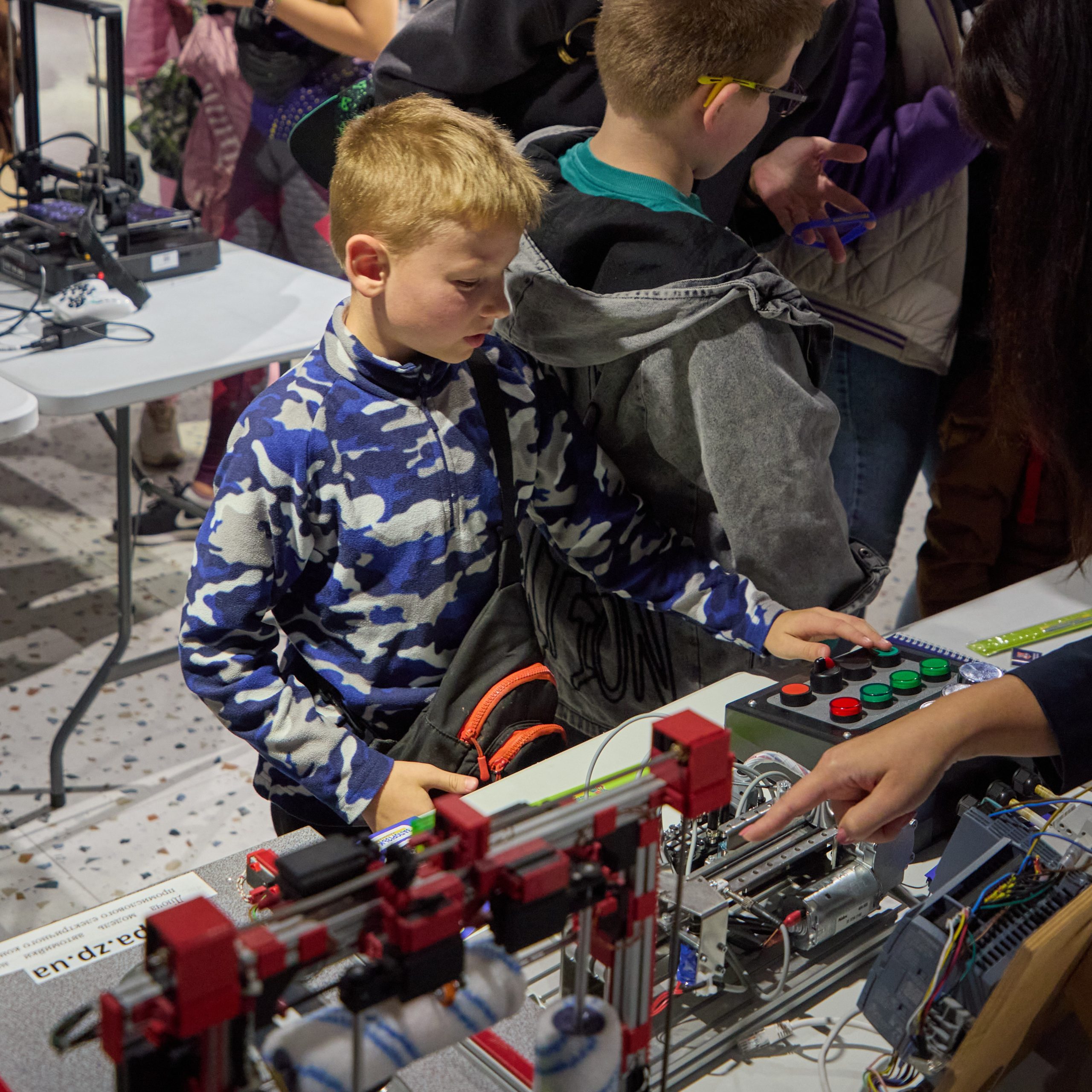 Діти випробували роботів для сумо, керували роборукою, розгадували шифр, щоб відкрити таємну коробку, побачили, як працює машина Морзе й навіть відчули себе пілотом на стенді доповненої реальності. Вони також брали участь у STEM-експериментах: керували робокарами Microbit, дізналися про переваги автоматизації на макетах автомийки та сортувальної станції.