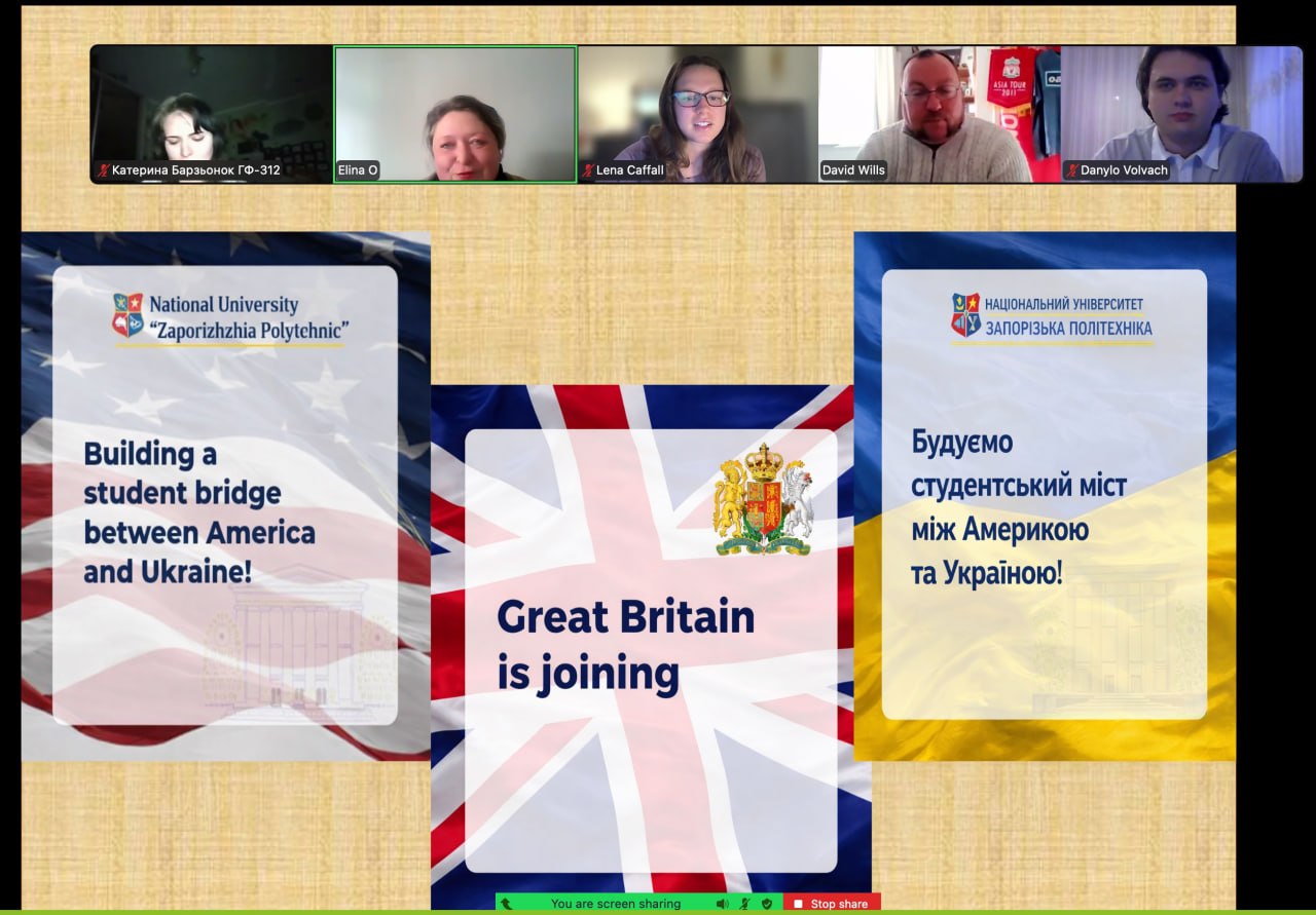 30 березня відбулася чергова зустріч студентів гуманітарного факультету НУ «Запорізька політехніка» та Університету Джеймса Eдісона (штат Вірджінія, США), присвячена питанням ролі англійської мови в освітньому процесі в умовах процесів глобалізації та інтеграції.