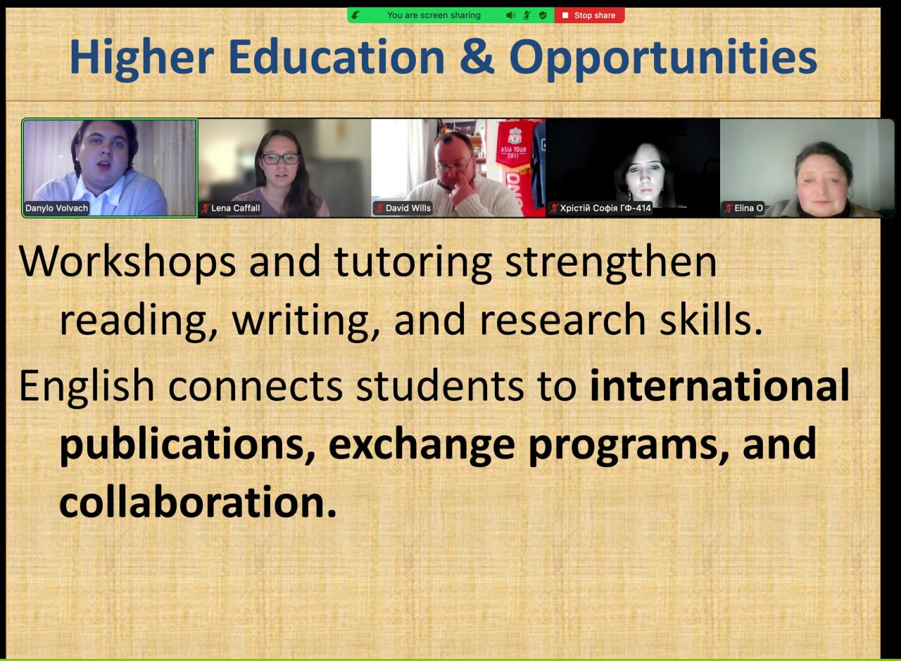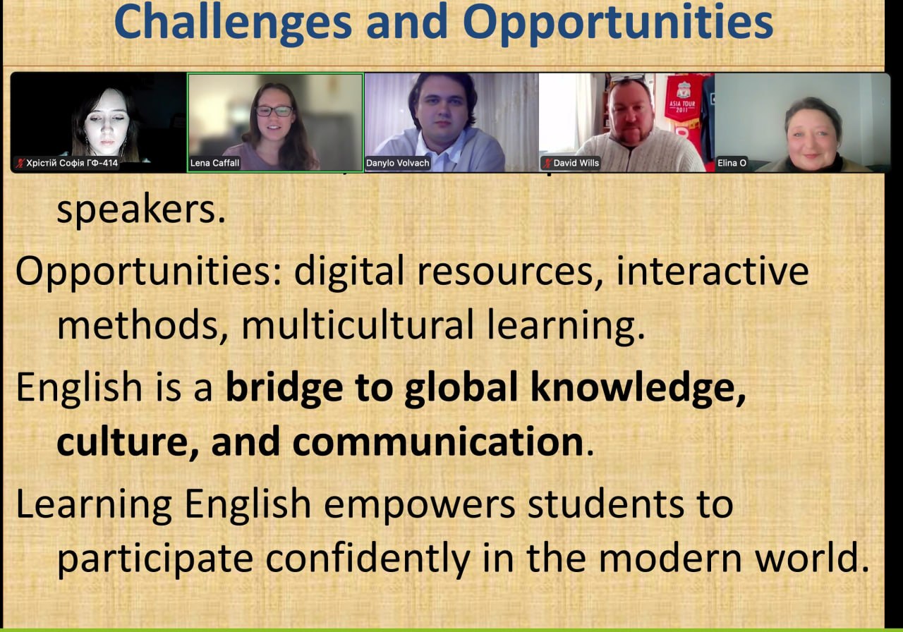 Було обговорено проблеми ефективності вивчення та використання англійської мови як мови міжнародного спілкування, адаптації студентів до англомовного академічного середовища.